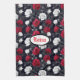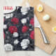 Rote, schwarze und weiße Rosen bedecken dieses schöne Goth Küchentuch. Personalisieren Sie mit Ihrem Namen in weißem, schwarz-weißem Schriftart.