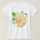 Ein gelber T - Shirt mit einer handbemalten Aquarellfarbe aus einer goldgelben "Dreaming Spires"-Rose. Auch sieht auf einem weißen T - Shirt gut aus.