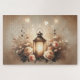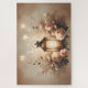 A softly glowing lantern becomes the heart of a romantic cottagecore scene, surrounded by blush roses, airy wildflowers, and floating heart lights that feel dreamy and hopeful. Warm amber tones blend into a misty backdrop, giving the artwork a gentle vintage glow. The composition feels serene, sentimental, and lovingly handcrafted, perfect for anyone drawn to whimsical florals and quiet, luminous beauty. AI generated artwork.
