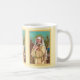 In dieser hübschen Darstellung aus einem gedanklichen Ausdruck steht die St. Rose Lima (1586-1617) in einer tropischen peruanischen Landschaft am Nachmittag. Kleine gelbe Sterne funkeln im dunkelblauen, grünen Himmel hinter ihr. Sie wird von einer braunen Klapperkirche auf der links Seite und rechts von einer schwebenden Palme flankiert. In der cremefarbenen dominikanischen Gewohnheit, die ihrer Mitgliedschaft in der Dritten Ordnung entspricht, trägt sie eine Dornkrone in Erinnerung an die Leidenschaft Christi über ihrem weißen Schleier. Sie hat eine Armlehne aus rosa Rosen und ein Holzkreuz. + St. Rose war der erste geborene in Amerika, der zum Heiligen erklärt wurde und auch heute noch beliebt ist. Sie ist die Hauptschirmherrin Perus und der indigenen Völker Lateinamerikas, Mitpatron der Philippinen mit St. Pudentiana, Schutzpatron Nord- und Südamerikas im Allgemeinen und Schutzpatron von Santa Rosa, Kalifornien und seinen Diözesen. Außerdem ist sie die Schutzheilige der Stickereien, Gärtner und Floristen. Natürlich sind Rose aller Sorten zu ihrem Attribut geworden. In der Kunst wird sie mit Rose gekrönt, mit Rose (wie hier) gehalten, oder in einer Umgebung mit Rose oder blühenden Rose. + Fest: August 23 + Image Credit (M 024): Antiquitätenbild der Rose Lima aus einem in Deutschland gedruckten devotionalen Chromolithographie, Originalverlag unbekannt, Ende des 19.-frühen 20. Jahrhunderts, aus der privaten Sammlung religiöser Ephemerien des Designers. + Bevorzugen Sie einen anderen Farbhintergrund? Die Farbpalettenpostkarte für dieses Bild enthält die empfohlene Farbpalette. Farbpalettenpostkarten finden sich in der zugehörigen COLLECTION eines Bildes und in der speziellen COLLECTION für Farbpaletten.