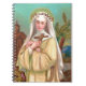In dieser hübschen Darstellung aus einem gedanklichen Ausdruck steht die St. Rose Lima (1586-1617) in einer tropischen peruanischen Landschaft am Nachmittag. Kleine gelbe Sterne funkeln im dunkelblauen, grünen Himmel hinter ihr. Sie wird von einer braunen Klapperkirche auf der links Seite und rechts von einer schwebenden Palme flankiert. In der cremefarbenen dominikanischen Gewohnheit, die ihrer Mitgliedschaft in der Dritten Ordnung entspricht, trägt sie eine Dornkrone in Erinnerung an die Leidenschaft Christi über ihrem weißen Schleier. Sie hat eine Armlehne aus rosa Rosen und ein Holzkreuz. + St. Rose war der erste geborene in Amerika, der zum Heiligen erklärt wurde und auch heute noch beliebt ist. Sie ist die Hauptschirmherrin Perus und der indigenen Völker Lateinamerikas, Mitpatron der Philippinen mit St. Pudentiana, Schutzpatron Nord- und Südamerikas im Allgemeinen und Schutzpatron von Santa Rosa, Kalifornien und seinen Diözesen. Außerdem ist sie die Schutzheilige der Stickereien, Gärtner und Floristen. Natürlich sind Rose aller Sorten zu ihrem Attribut geworden. In der Kunst wird sie mit Rose gekrönt, mit Rose (wie hier) gehalten, oder in einer Umgebung mit Rose oder blühenden Rose. + Fest: August 23 + Image Credit (M 024): Antiquitätenbild der Rose Lima aus einem in Deutschland gedruckten devotionalen Chromolithographie, Originalverlag unbekannt, Ende des 19.-frühen 20. Jahrhunderts, aus der privaten Sammlung religiöser Ephemerien des Designers.
