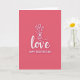 This Valentine's Day card features a rich rose-pink background that sets a romantic mood right away ❤️. Centered on the front, the word “love” appears in smooth white lettering with a faint shadow that makes it stand out. Above the lettering, a simple line drawing shows a hand gently holding three tulips, as if offering them to someone special 🥰. The tulip petals are lightly outlined and slightly open, adding a soft, tender touch to the scene. The hand and flowers are drawn in one continuous-looking line, giving the design a modern, minimal feel. Near the bottom, “HAPPY VALENTINE’S DAY” is placed in all caps in white, using a neat sans-serif style that keeps it easy to read. The layout feels balanced, with the bouquet hovering over the main word and the greeting grounding the design. The tulips sit just above the center, their thin white lines crisp against the rose-pink field.