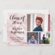 Elegantes, edles, weißes und goldenes Marmormuster der Rose, trendige und beliebte Hintergrundmotive geben ein Statement zu Kraft und Stabilität. Seien Sie mit dieser eleganten Drei-Foto-Abschluss-Ankündigung mit dem ersten Monogramm auf der Vorderseite und auf der Rückseite und handgeschriebenem Look-Text an der Spitze der Klasse.
