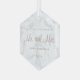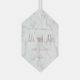 Bist du dieses Jahr verheiratet geworden? Fügen Sie Ihrem Baum eine Erinnerung mit diesem modernen und eleganten Keepsake-Ornament mit den Worten "Unser erstes Weihnachten als Mr. und Mrs." in einem Imitat Rose Gold-Drehbuch über einen grauen und weißen Marmorhintergrund. Verwenden Sie die Vorlage, um Ihre Namen und das Jahr Ihrer Hochzeit hinzuzufügen. Dieses Ornament ist auch ein großartiges Geschenk für ein frisch vermähltes Paar zu Weihnachten.