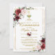 Marsala Rose & Gold Rahmen erschwingliche, maßgefertigte Baby Girl First Communion Einladung. Dieses hübsche Design hat eine Aquarellmarsala und rot-rosa Blume mit goldenen Kalice-Ikone. Personalisieren Sie das Design mit den Details zum First Communion Party Ihres Kindes. Die Rückseite hat eine goldene Kneipe mit Aquarellfarben-Blume oder nutzen Sie den Platz, um zusätzliche Texte und Fotos hinzuzufügen. Klicken Sie auf Anpassen, um eine beliebige Hintergrundfarbe auszuwählen und die Schriftart und Farben des Textes zu bearbeiten, um eine einzigartige Einladung für Ihr Baby zu erstellen.