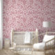 Rosenfarbenes Mauve Leafy Design-Tapete. Eine Änderung der Hintergrundfarbe ist in diesem Fall nicht möglich.