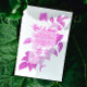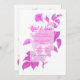 Eine Vintage Rosa und Magenta Rose Botanischer Blumendruck Einladung auf weißem Grund.