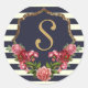 Elegante, schicke Rosen in Rot und Rosa mit Marineblau und Elfenbeinweiße Streifen und Imitate bedruckt Gold, umrissen, Monogramm Aufkleber. Dieses klassische und raffinierte Design ist perfekt für die elegante, trendige und stilvolle Frau. Personalisieren Sie Ihre eigenen individuellen Monogramminitialen. Das gesamte Foto-Druckdesign.