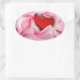Liebliche und romantische Illustration mit einem roten Glasherz auf einem Bett mit weißen rosa Rosenblättern.