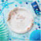 Eine elegante fallterracotta bohemian Thema Hochzeitspapier Teller mit einer Serifenschrift mit handgezeichnet Aquarellfarben gedämpfte Rose, Pampas Gras und Palmenblatt.