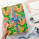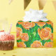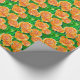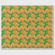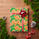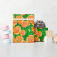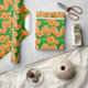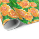 Umhüllungspapier in Aquarellfarben, in Pfirsichtönen und Weich-Korallenorange, mit einem Hintergrund von grünen Blätter
