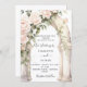 Ein großer Marmorbogen mit pfirsichfarbenen und weißen Rose. Personalisieren Sie Ihre Party-Daten und fügen Sie sie hinzu.