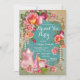 Hübsch rosa Rose, elegante Perlen, rosa Teekanne und Teakup auf einem schönen aquamarinen, blauen und goldenen Hintergrund. Diese elegante Brauttee-Party Einladung ist einfach für Ihre Veranstaltung angepasst, indem Sie Ihre Details in den Schriftart Stil, Farbe und Wortlaut Ihrer Wahl.
