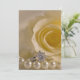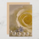 Erleben Sie die anstehende Hochzeitsfeier mit der eleganten White Rose, Pearls und der Einladung zur Ring Wedding. Die nahe Blumenfotografie mit weißer Rosenblüte, weißer Perlenhalskette und runder Verlobung aus Diamant und Platin lädt zum Verweilen ein.