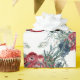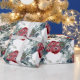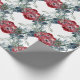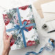 Ein Weihnachtsgebäckpapier mit einem Aquarell-Trell von rote Rosen im Frühwinterherbst mit Kiefer- und Fichtenbaumstämmen und Beeren bildete sich zu einem üppigen Urlaubsturm.