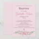 Rose Pink Floral Watercolor Cross Baptism Einladung