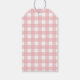 Ein kariertes Muster aus weicher, blütiger Rose aus rosa Gingham verleiht diesem Geschenkschild eine gmädchenhafte Picknickatmosphäre, die sich perfekt eignet, um Geschenktaschen für den Grill zu knüpfen, der Mama- und Babymädchen feiert.