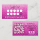 Aktualisieren Sie Ihre Kundenerfahrung mit dieser atemberaubenden Rose Rosa Glitzer ombre lash Treuekarte. Der schillernde Designwandel von sanfter Rose zu lebhaftem Rosa bietet eine luxuriöse und trendige Ästhetik für Künstler, Schönheitssalons und Boutiquen. Die Karte verfügt über zehn weiße Lochkreise, die es ermöglichen, Kundenbesuche oder Einkäufe zu verfolgen und dabei ein poliertes, berufliches Aussehen zu bewahren. Fügen Sie einen scannbaren QR-Code hinzu, um den Kunden noch mehr Komfort zu bieten und so den schnellen Zugriff auf Ihre Buchungsplattform, Social Media Profile oder Website zu ermöglichen. Diese Treuekarte erhöht nicht nur die Verlobung der Kunden, sondern dient auch als schöne Darstellung des Stils und der Qualität Ihrer Marke. Egal ob an Ihrem Empfang angezeigt oder nach dem Service an den Kunden übergeben, diese Karte sorgt für wiederholte Besuche und schafft einen bleibenden Eindruck. Das funkelnde Glitzer-Design ist auffallend und perfekt für jedes Beauty-Business, das Eleganz mit Praxisnähe will.