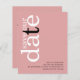 Eine günstige BUDGET-Alternative für eine kleinere Größe von 4,5 x 5,6 Zoll, die ein Gewicht von 110 lbs hat, die ähnlich dick ist wie eine Postkarte (sie ist jedoch nicht als Postkarte geeignet). BITTE BEACHTEN SIE, DASS ES EINE Einladung pro Blatt gibt. Budget Dusty Rose Rosa QR Code Text Save the Date. Fügen Sie Ihren QR-Code auf der Rückseite Ihrer Hochzeitswebsite hinzu, indem Sie den QR-Code des Beispiels ersetzen. Sie können QR-Codes kostenlos online erstellen. Suchen Sie einfach nach "QR Code Creator" und viele Optionen werden kostenlos erstellt. Ein modernes, stylisches typografisches Design, um Ihre Familie und Freunde zu einem rett Ihres Datums einzuladen, mit Rett Our Date in großer Typografie gedreht und auf der links Seite oben in Weiß, mit einem schwarzen Buchstaben "t" auf einem Hintergrund von blassrosa staubigen Rose pink. Personalisieren Sie die Erholung des Textes einfach.