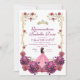Moderne, rosa und goldene Einladung mit rosafarbenem Kleid und rosa rote Rosen, Goldstaub mit goldenem Farbpour (das Gold ist ein digitaler Effekt, keine echte Folie!) und moderner Kalligraphie. Hübsch und elegant, luxuriös und modern eingerichtet.
