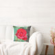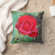 Die lebendige rote Rose schmückt ein bequemes Kissen. Schöner Blumenstil für Zuhause oder Bürodekoration.