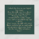 Präsentation der Website-Adresse-Karte für Hochzeiten aus der Rose Romance: Jugendstil-Splendor-Kollektion, eine schicke und praktische Möglichkeit, die Details Ihres besonderen Tages zu teilen. Die Vorderseite der Karte zeigt ein elegantes Bild, das mit Rose und einem Rahmen geschmückt ist und eine faszinierende Kulisse schafft. Hervorzuheben ist die Website-Adresse, die den Gästen direkten Zugang zu Ihren Hochzeitsinformationen bietet. Für zusätzliche Bequemlichkeit wird ein QR-Code angeboten, der eine moderne und effiziente Möglichkeit bietet, auf die Website zuzugreifen. Drehen Sie sich nach hinten, wo eine raffinierte Flasche grüner Hintergrund erwartet. Auf dieser Seite finden Sie einen durchdachten Raum für eine individuelle Nachricht, mit der Sie Ihren Gästen persönliche Gefühle oder zusätzliche Details vermitteln können. Egal, ob Sie Dankbarkeit zum Ausdruck bringen, Event-Highlights teilen oder besondere Anleitungen anbieten, dieser anpassbare Bereich fügt der Wedding Website Address Card eine persönliche Touch hinzu. Diese Karte verbindet ästhetische Anziehungskraft und Funktionalität harmonisch mit der Eleganz der Rose Romance: Art Nouveau Splendor Kollektion und sorgt für eine kohärente und stilvolle Präsentation für Ihre Hochzeitsarbeit.