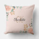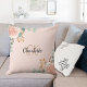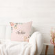 Rose Rosa Blumengrün Monogramm Name Kissen
