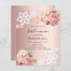 Eine elegante Einladung der ersten Kommunion. Ein goldener Hintergrund aus der Rose, der mit goldenen Blumen in Rosa und Rose, Rose, Spitzen und einem goldenen Kreuz geschmückt ist. Personalisieren und fügen Sie einen Namen und Details. 1 Blatt = 1 Einladung mit Druckkante bis Kante.