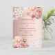 Für eine elegante und romantische Hochzeit. Rosengoldener Hintergrund mit rosa und rosa Goldfloralen, Rosen und Spitzen. Personalisieren Sie Ihre Namen und Details und fügen Sie diese hinzu.