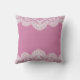 Ein hübscher, rosa Hintergrund der Rose ist wunderschön kontrastiert mit einem feinen weißen Spitzentranz in diesem Bild, wodurch ein schönes Kissen entsteht, das jeden Raum aufhellen wird. Fügen Sie, wenn Sie möchten, Ihren eigenen, maßgeschneiderten Text hinzu. *Bitte beachten Sie, dass das Bild auf der Oberfläche gedruckt ist und keine aktuelle Spitze enthält.* **Erstellt mit Kunstwerken, die von der Digital Design Boutique unter http://digitaldesignboutique.com erworben wurden.