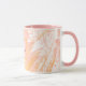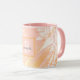 Ein elegantes, modernes, tropisches abstraktes Muster im Sommer. Korallen, Rose Gold, rosa Hintergrund und Blätter mit weißen Palmen. Mit goldenen Pinselstrichen dekoriert mit Imitaten. Geben Sie Ihren Namen und den Monogramm-Buchstaben ein.