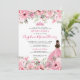 Happy Pink Roses Quinceañera Einladung. Dieses hübsche und mädchenhafte Design besticht durch eine lebhafte Mischung aus fröhlichen Rosen und Blume in den Farbtönen Rosa und Pastellbraun, Pink und kräftige, fröhliche Rosetten, die alle durch üppig grüne Blätter hervorgehoben werden. Die Vorderseite zeigt eine leuchtend rosa Funkelprinzessin Tiara oben, gepaart mit elegantem und dennoch spielerischem Drehbuch und klassischen Serif-Schriftart in einem Mix aus schwarz und leuchtend rosa für einen unterhaltsamen und stilvollen Look. Ein wunderschön illustriertes Mädchen in einem leuchtend rosa funkelnden Kleid fügt eine skurrile Touch hinzu, was diese Einladung perfekt für eine fürstentauliche Feier macht. Der Rücken ist schlicht weiß, um einen sauberen und schlichten Look zu erhalten. Sie können diese Einladung personalisieren, indem Sie die Schriftart-Farben, den Hintergrund und die Hintergrundfarbe entsprechend Ihrem individuellen Stil ändern. Erhältlich als gedruckte Einladung oder als digitale Einladung zum Herunterladen, dass Sie E-Mail oder Druck vor Ort!