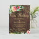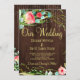 Elegante schicke Sommer- oder Herbst-Hochzeit im Herbst-Stilvorlage auf braunem Stallholz mit einem wunderschönen, rosa und korallenroten Strauchbukett mit schlängelgrünem Blattwerk, senkrechten Stangen oder blinkenden Lichtern und goldener Kalligraphie-Schrift. ++++++++++++++++ Persönliche Gestaltung mit Ihren Daten! Sie können wählen, um es anzupassen weitere sich ändernde Schriftartes und Farben der Schrift. ++++++++++++++++++++++ Die Einladung eignet sich für ein elegantes Sommer- oder Herbstland | Gartenhochzeiten im Hinterhof.