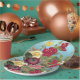 Rose Rot, Burgandy, Gelb, Aquamarin Backed Pappteller