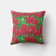 Kissen in Aquarell-Rose in Tiefenschattierungen in Rose Rot vor einem Hintergrund von grünen Blätter werfen