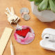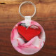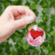Liebliche und romantische Illustration mit einem roten Glasherz auf einem Bett mit weißen rosa Rosenblättern.