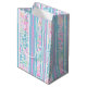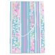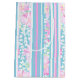 Eine hübsche mittelgroße Tasche mit rosa, himmelblauen und weißen Decksstuhlstreifen und rosa Rosen. Als Teil der Posh & Painterly 'Summer Days' Kollektion kann dieses Muster an jeden Geschenkbeutel angepasst werden.