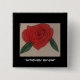 Das ist ein schwarzer Quadrat-Knopf mit zeichnend Rose und dort steht "Artistisch zufällig".