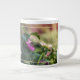 Eine wunderschöne Rose der Sharon Blüte hat einen Besuch von einem silber-gepunkteten Skipperschmetterling.