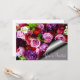 Rosa, rote Rosen und Orchideen, die für jeden Anlass eine individuelle Einladung sind, mit grauem Aufrollen.