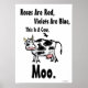 Rose sind rot, Violetten blau, das ist eine Kuh, Moo. Dieses lustige Poster ist die perfekte Dekoration... Es beinhaltet das Gedicht oben sowie eine lustige Cartoon-Abbildung einer schwarz-weißen Kuh. Spaß, seltsam, und nur das Ding für diejenigen, die ein wenig seltsamen Sinn für Spaß und eine Liebe für schlechte Poesie haben. Passen Sie es an! Sie können den Text ändern oder die Hintergrundfarbe ändern. Tu, was du willst, und mach es dir!
