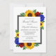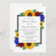 Das Design besticht durch elegante Sonnenblumen, Rose und Wildblumen mit einer goldgelben, roten und marineblauen Farbpalette. Das Design verfügt auch über einen kohlegrauen Rahmen. Sie können die Hintergrundfarbe auf der Vorderseite und zurück in die gewünschte Farbe ändern oder beide Set in Weiß verlassen werden.