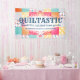 Super niedliches Kunsthandwerk-Banner für einen Ständer aus den Bereichen Naht, Quilt, Quilts oder Quilting, mit einem farbenfrohen Hintergrund mit Vintagen Rose und Farbblöcken in einfachen Mustern, personalisiert mit Ihrer Auswahl an Text und Schriftart.