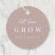 Elegante typografische Gevor-Tags mit "lass Liebe wachsen" in handgeschriebenen Skripten und klassischen Serifenschriften. Ideal für Pflanze, Samen oder Sukkulenten für Hochzeiten oder Brautpartys. Farbe: Rose Taupe, ein neutraler rosa Taupe.