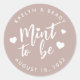 Die Punny Gastgeschenk Hochzeit Aufkleber sind in weißem, handgeschriebenem Schrift mit Herzensgeist "mint to be" auf einer staubigen Rose pink taupe Hintergrund. Personalisieren Sie mit Ihren Namen und Hochzeitstermin.