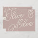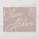 Diese elegante, typografische UAWG-Postkarte wurde speziell für die Einladungen von Script Watermark entworfen und eignet sich hervorragend für herkömmliche Mailing-in-RSVPs. Das Design zeichnet sich durch überdimensionale Schriftzeichen an der Spitze aus, in Ton auf Tontönen für einen Wasserzeichen-Effekt. Personalisieren Sie mit Ihrem gewünschten UAWG und lassen Sie den Wortlaut in klassischen Serifenschrift, rechts unten ausgerichtet, akzeptieren und ablehnen. Unsere Rose Taupe ist ein eleganter Mix aus erdigen, neutralen Pinks, mit warmen weißen und klassischen weißen Schriftzeichen auf rosigen Untergründen.