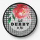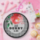 Party Papier Teller mit einer rote Rose auf schwarz-weiß Gingham Karo Hintergrund, perfekt für Derby Party, Derby themed Brautparty und mehr. Alle Schriftart, Texte, Farben, Größen können geändert werden, klicken Sie einfach auf den Link Weitere Anpassungen. PASSENDE Artikel in unserem Geschäft.