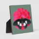 Ein digitales Bild einer blühenden rote Rose, das von einem schwarzen Schmetterling besucht wird.