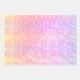 Drei-Blatt-Umhüllungspapier mit einem Bild einer blassrosa, lila, gelben und blauen Rose auf dem ersten Umhüllungsblatt. Auf dem zweiten Blatt, ist ein Regenbogen von Glitzer in Gelb, Rosa und Blau mit dem 3. Blatt in den gleichen Farben mit einem Vintagen Design.