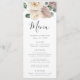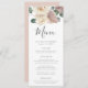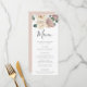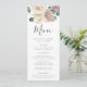 Elegante Blumenkarte mit einer überragenden, cremefarbenen Rosenwand, Orchideen in Rosa, Rosa und Lila, grünen Blätter und Blattwerk. Personalisieren Sie die Blumenmenüs, indem Sie Ihre Namen, das Hochzeitstermin und das Hochzeitsmenü hinzufügen. Entworfen, um mit unseren Watercolor Rose und Orchids Hochzeitskollektion zu koordinieren.
